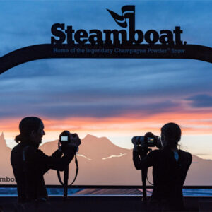 This mountain wedding took place on snow at Steamboat Resort in Steamboat Springs, CO. The bride skied to the groom before the ceremony!
