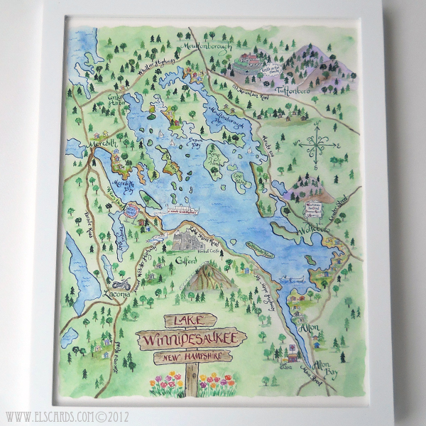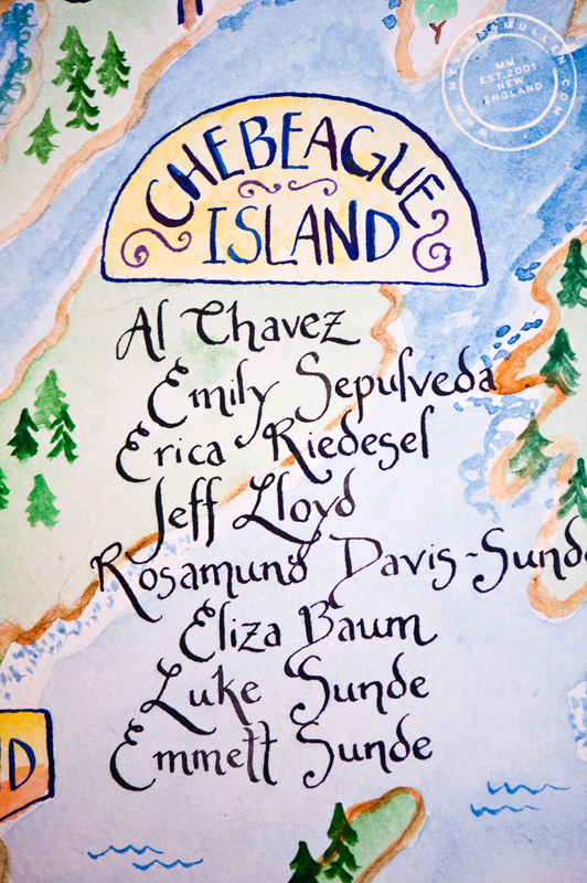 Looking for a wedding invitation suite or custom paper goods? I was first introduced to El’s Cards by New England wedding photographer Melissa Mullen when a custom watercolor holiday card showed up in my mailbox. Melissa had recently relocated to a new studio in Portland, Maine and found El’s work a perfect compliment to usher in the New Year and news. After a lengthy web stalking session of El’s work, I fell in love. I’m a huge fan of local artists and custom work. You will see from some of Melissa’s images below, El can create many custom pieces for your wedding needs. A personal favorite from the “cards” section was what tipped me off to put together this blog post – the S’mores card. I’m a camp girl at heart (YMCA Camp Huckins) and S’mores bring back great memories.Ellen Greely Braley, owner and artist behind “El’s Cards” has been creating Custom Watercolor Invitations and Stationary since 1999. In the early days working out of Milton, MA, El sold greeting cards in the lobby of her favorite gym in South Boston. Relocating to NH in 2004 didn’t slow down operations. She found the beauty in nature continues to inspire new designs in her Greenland, New Hampshire studio. With 20+ years of calligraphy and watercolor experience, El’s ideas for new artwork never end. Her maps are created in her own personal style in watercolor and calligraphy and are proving to be her most popular new item (I’m in love with them, see a few favorites below). I think El’s custom work will bring many happy memories to you and those you love. A huge hug to Melissa Mullen Photography for connecting me with El. I can’t say enough positive things about both of these wedding professionals.